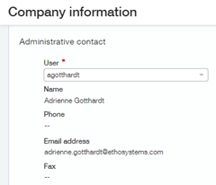 - Under Company Information, if they were the Administrative Contact, make sure to change that to a different user