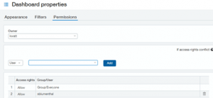 - Review the Owner and permissions for each Dashboard in the system. Going forward, do not assign permissions to Dashboards for a user, use Group Assignments instead.