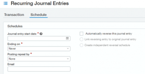- Under Recurring Journal Entries, make sure the email address for existing entries is updated.