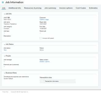 Job informationBy ETHOSystems / November 9, 2021 The Customer and Job can be updated in Sage Intacct and it will pass the information back to Salesforce