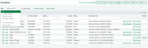 Sage Intacct will save all the views created for later use. These views can be seen in the drop-down option on the left side of the screen. This drop-down will also take on the same name as the currently selected View. In the example below, “Recently Modified” View was selected. The data was filtered to meet the parameters of the View, so the left-hand drop-down took on the name Recently Modified.