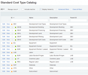 Sage Intacct Construction – Standard Cost Code and Cost Type Catalogs