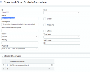 - When you set up the Standard Cost Codes, don’t forget to associate all the different Cost Types that Cost Code can use.