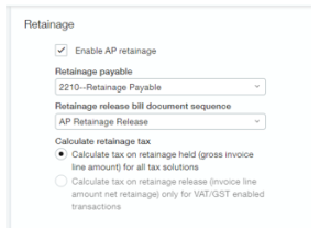 New retainage VAT or GST tax calculation options in AR and AP