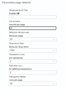 If you want more records returned on your List Screens or more Transactions Rows per page, you can increase those setting under the Personalize Page Defaults section.