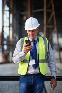 Mature,Construction,Worker,Man,Using,Smartphone,Browsing,Messages,On,SiteBy ETHOSystems / August 9, 2022